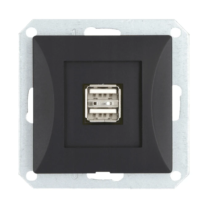 OPAL Gniazdo ładowarka USB podwójna do ramki czarny mat GŁ/USB-2/m Op CZ/MAT