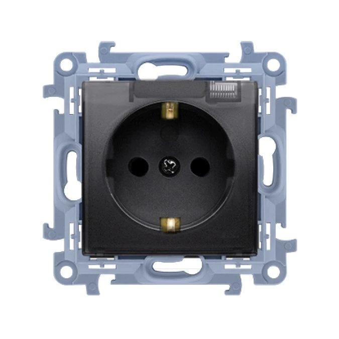 Simon 10 Gniazdo wtyczkowe Schuko do wersji IP44 z uszczelką - klapka transp. (moduł) zaciski śrubowe czarny mat CGSZ1B.01/49A