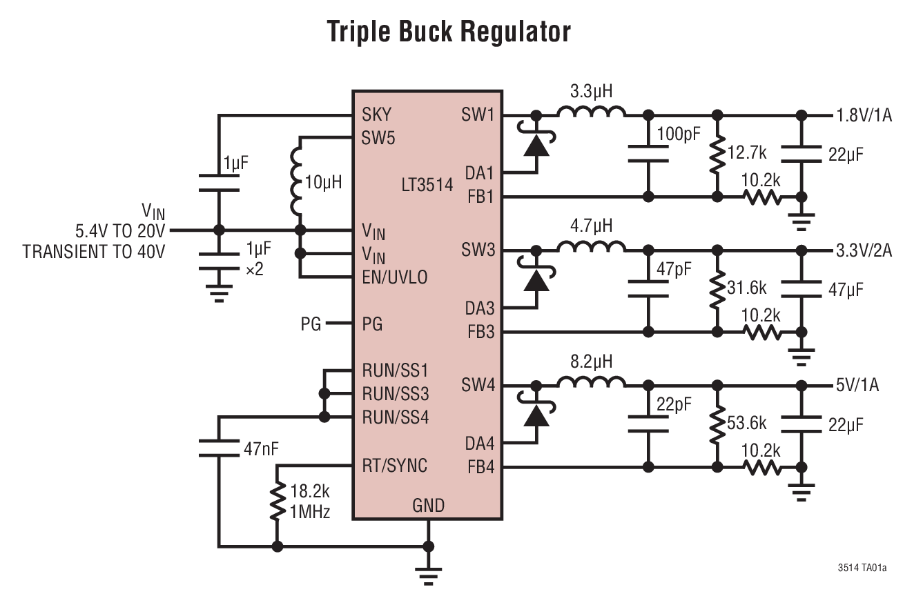 The LT3514 consists of three buck regulators (2A ...