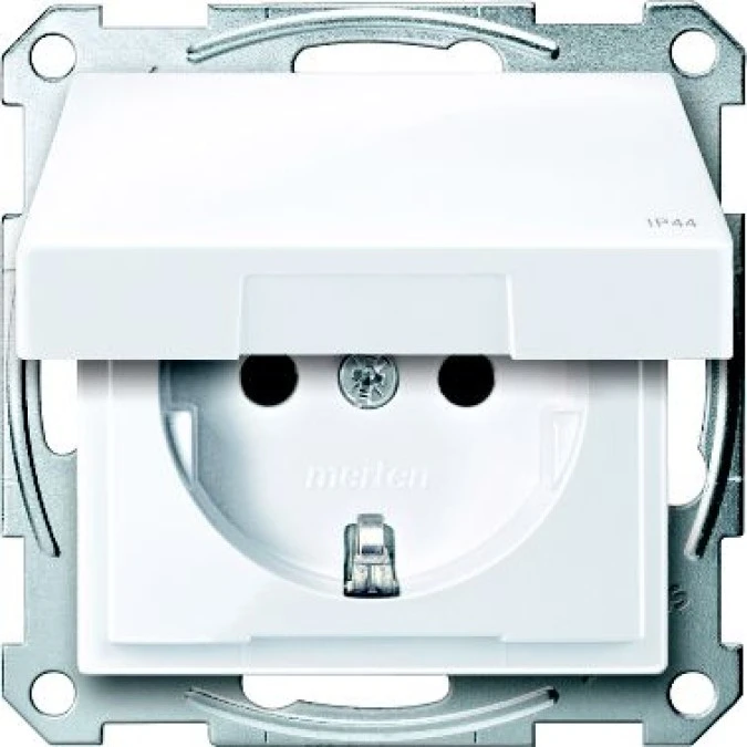 7. Merten System M Gniazdo pojedyncze SCHUKO IP44 z przesłonami i klapką biały active MTN2414-0325 113.86