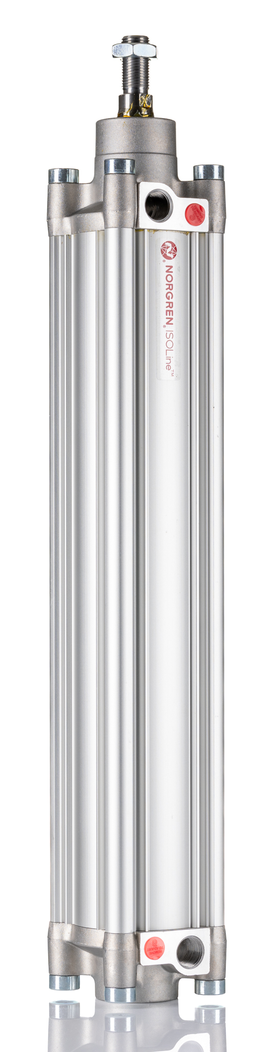 Siłownik pneumatyczny z tłoczyskiem skok: 320mm Norgren Ø 63mm dwustronnego działania Action 193.5mm z amortyzacją
