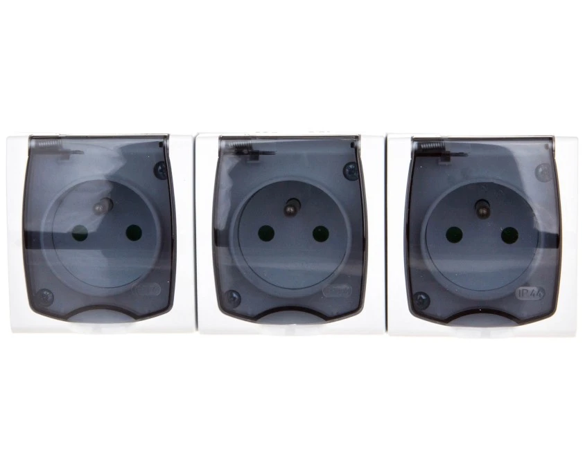 1. MADERA Gniazdo hermetyczne potrójne z/u IP44 z przesłonami klapka przezroczysta białe GNH-3NZP/00/d 51.81