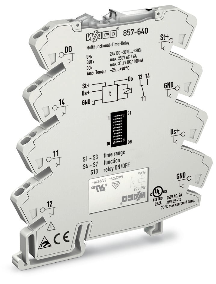15. Timer Relay Szyna DIN 250V SPDT 1-stykowy WAGO 0.01 s → 100 h 857 Przekaźnik czasowy funkcyjny 710.24