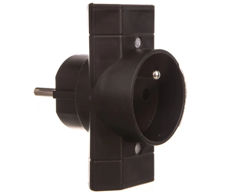 Rozgałęźnik Wtyczkowy 1-Gniazdo Z/U + 2-Gniazda B/U Euro Czarny R-21-2