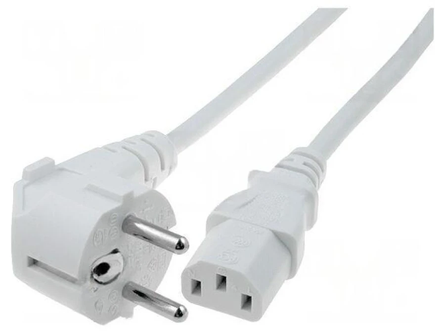 13. Kabel: 3x1mm2, CEE 7/7 (E/F) wtyk kątowy,IEC C13 żeński LT-322+501 H05VV-F 3X1.0 1.5M WHT 31.48