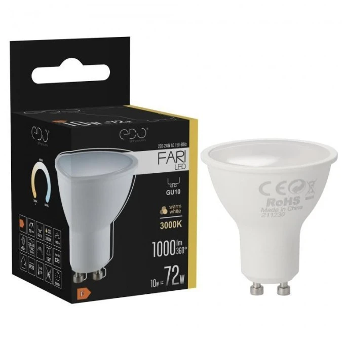 7. Żarówka FARI LED GU10 10W 3000K ciepła WW 1000lm 120st EDO777493 EDO 9.75