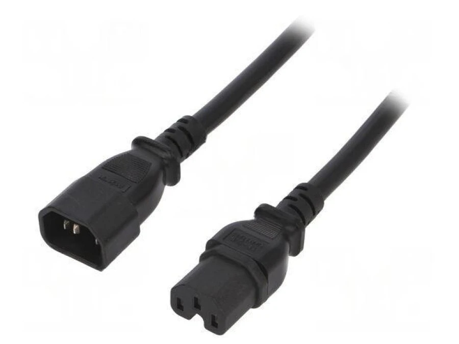 Kabel: 3x14AWG, IEC C14 męski,IEC C15 żeński, 1m, 15A LT-602+545 SJT 14/3 105C BLK 1M