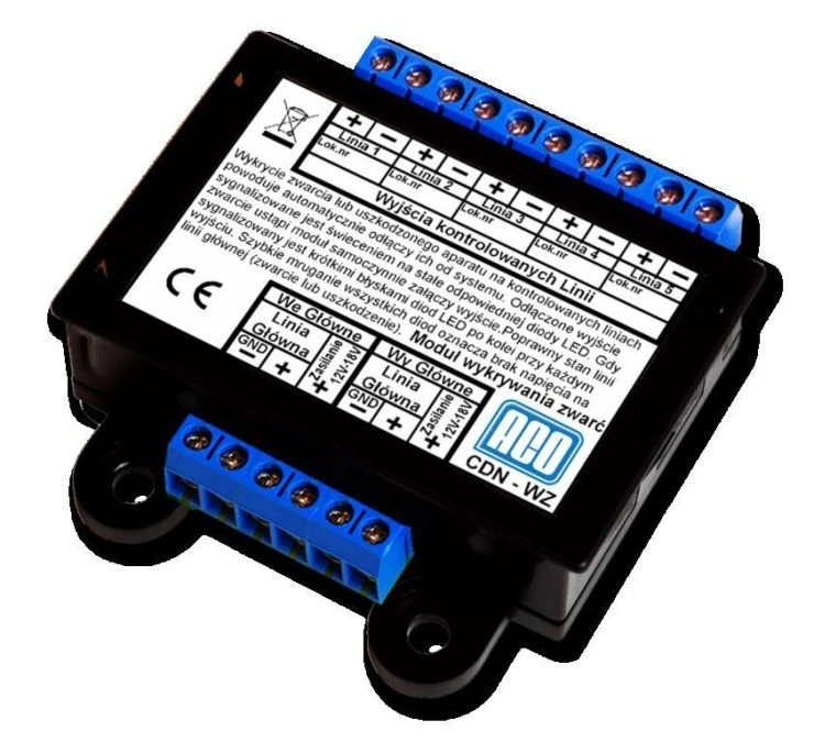 ACO CDN-WZ Moduł służy do wykrywania zwarcia linii lub uszkodzenia unifonu w lokalu.