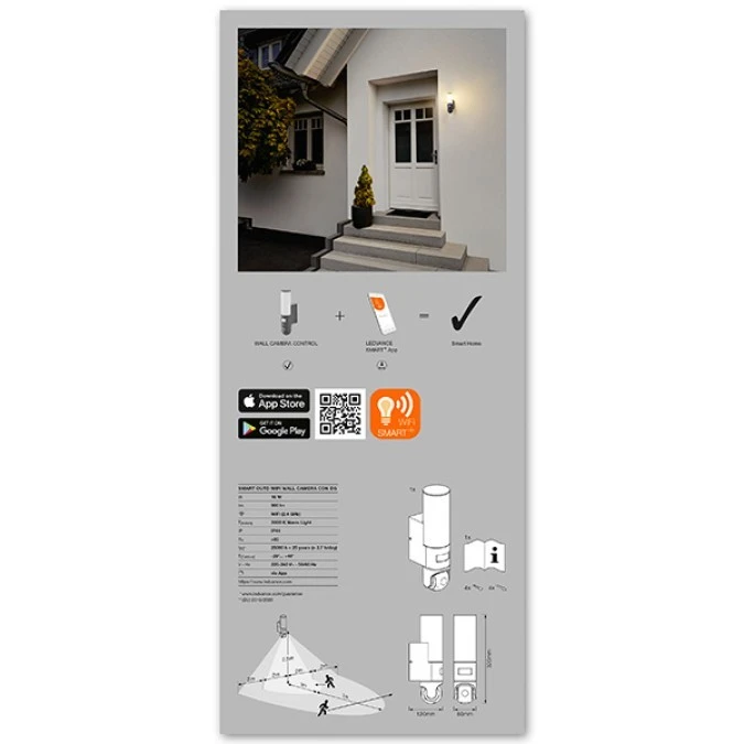 6. Lampa ścienna, zewnętrzna LED z kamerą monitoringu LEDVANCE Smart+ Wall Camera Control 4058075564602 AC34854 16 W IP44 699.00