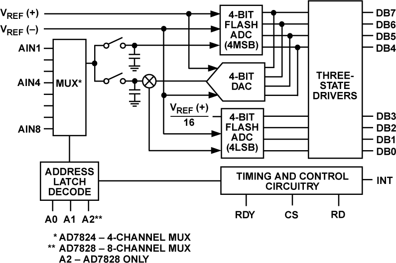 The AD7824 and AD7828 are high-speed, multichannel ...