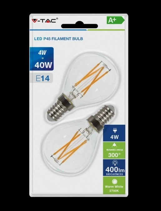 8. Żarówka Dekoracyjna Led Filament Vt-2184 4W E14 P45 2700K 400Lm A+ 300St. 7366 21.50