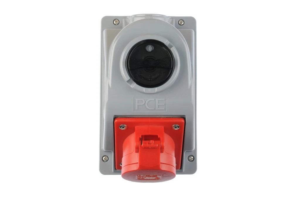 Gniazdo siłowe z klapką i wyłącznikiem [5p] 32A 400V stałe IP44 COMBO-POL PCE