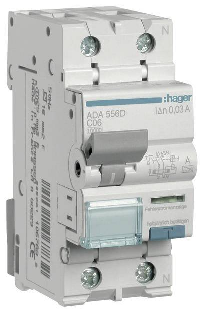 10. Wyłącznik różnicowoprądowy/automatyczny Hager ADA556D 2 styki 6 A 0.03 A 240 V 409.00