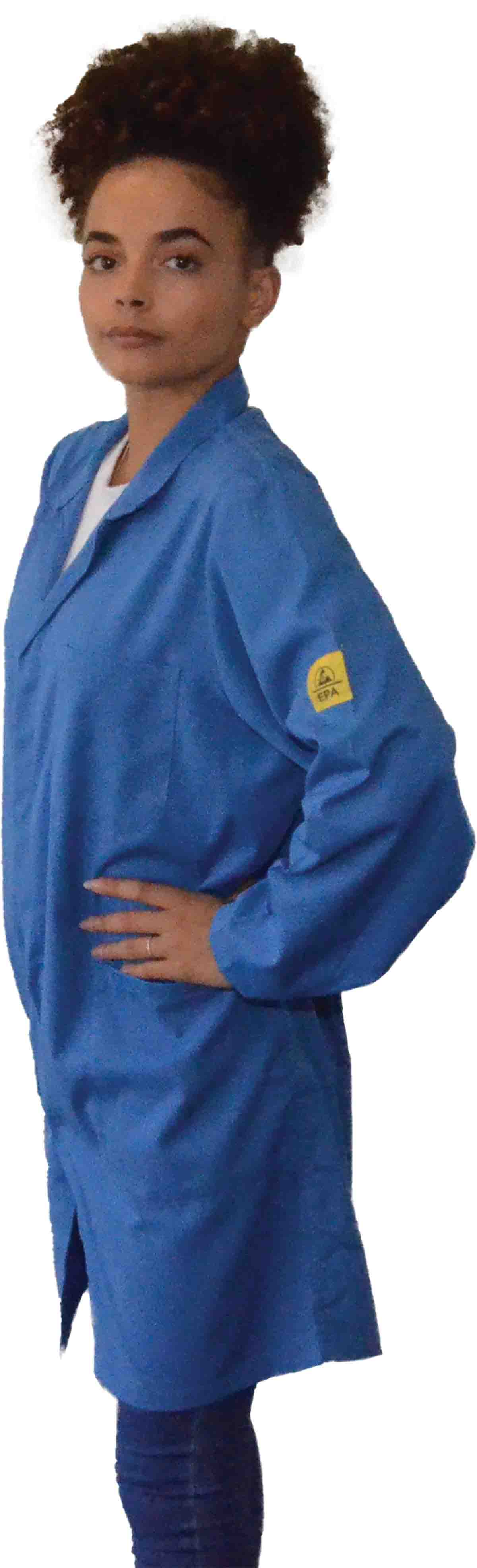 Fartuch laboratoryjny, Unisex, Niebieski, rozmiar: S, Antyelektrostatyczny, Bawełna, poliester, Wielorazowe