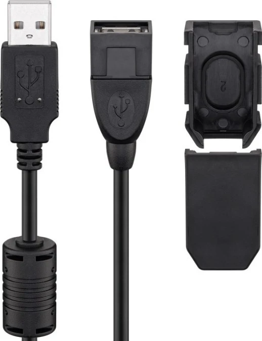 Przedłużacz USB 2.0 Hi-Speed z klipsem zabezpieczającym, Czarny - Długość kabla 2 m