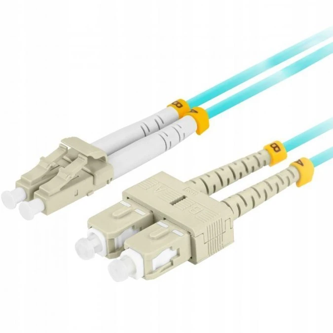 12. Patchcord światłowodowy MM LC/UPC-SC/UPC duplex 3mm OM3 aqua 1m LANBERG 13.53