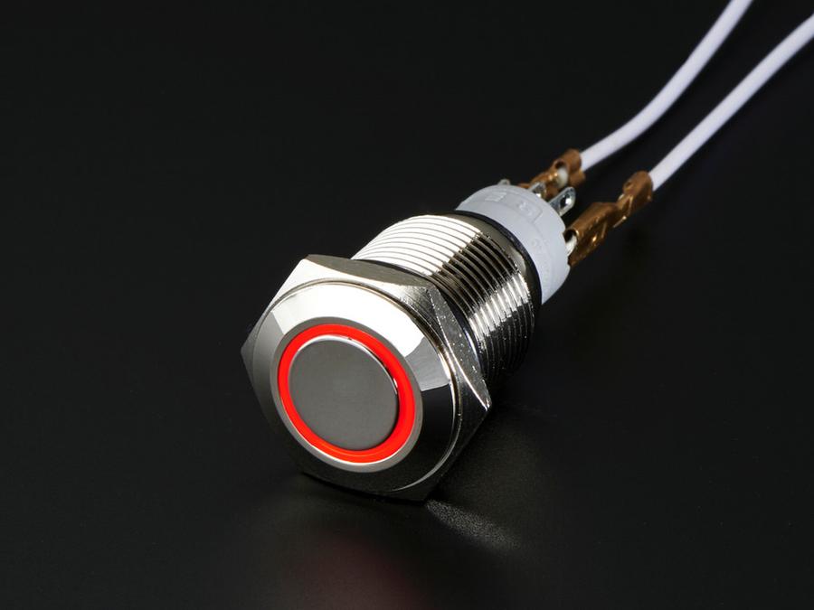 Adafruit Rugged Metal On/Off Switch with Red LED Ring