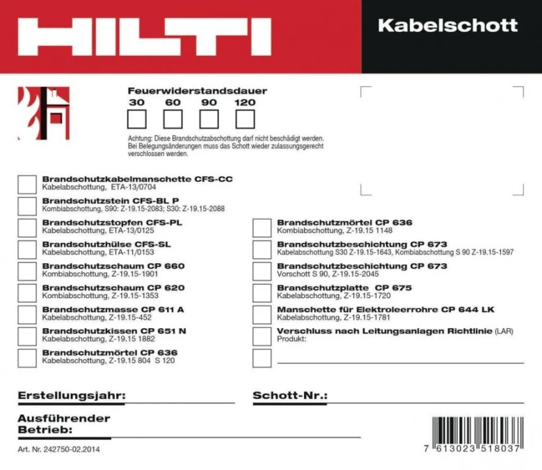 14. Naklejka identyfikacyjna, oznaczenie zabezpieczeń ogniochronnych QR (2000) mały 6586.13