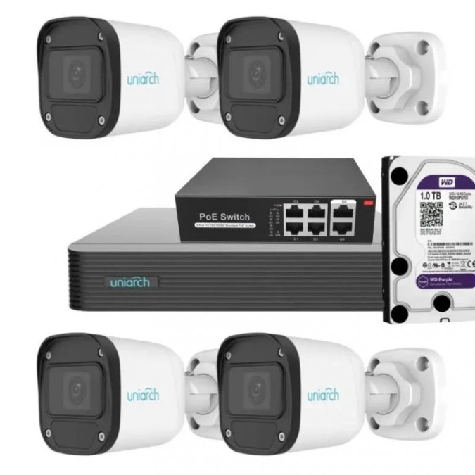 6. Zestaw monitoringu IP: 4 Kamery tubowe IP 4Mpix 2,8mm, Switch PoE, Rejestrator NVR, Dysk twardy 1TB / UNI-SET-4X4 1799.22
