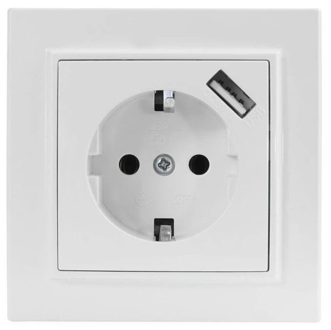 QUADRA Gniazdo SCHUKO +USB białe