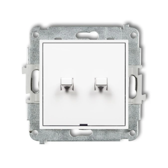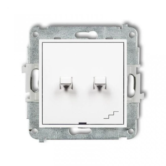 8. MINI Mechanizm łącznika jednobiegunowego ze schodowym w stylu amerykańskim (dwa klawisze bez piktogramów,wspólne zasilanie) biał 31.73