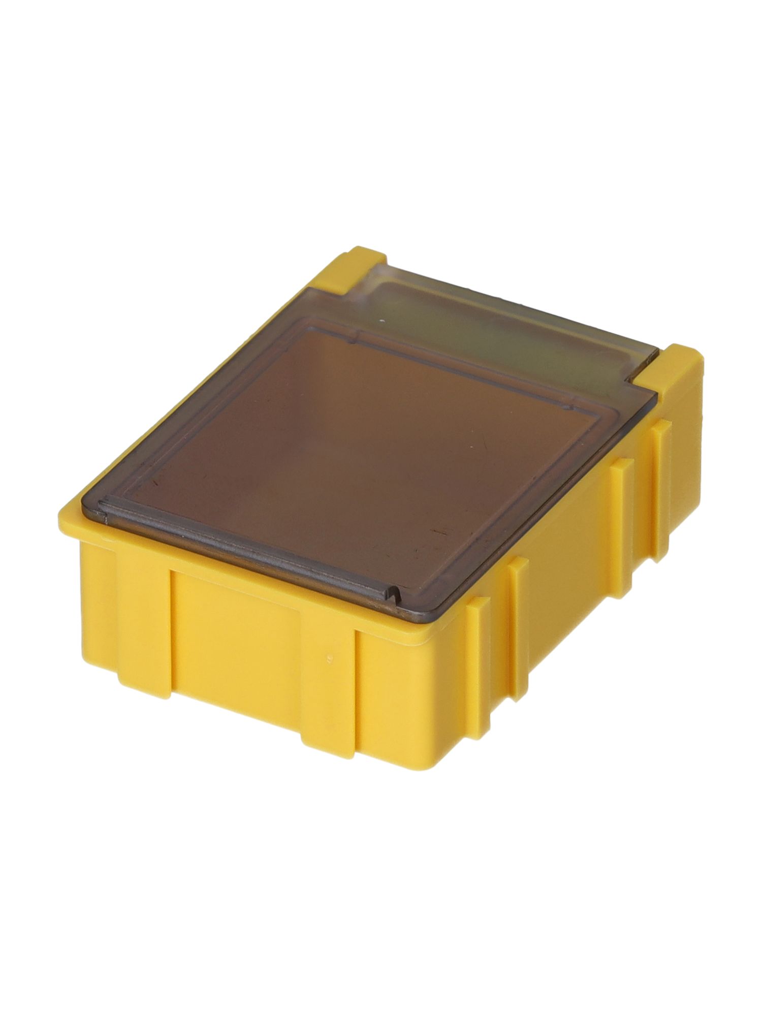 Skrzynka z przegródkami l. przedziałów: 1 szerokość: 21.8mm wysokość: 21mm głębokość: 29.4mm Przezroczysty, żółty