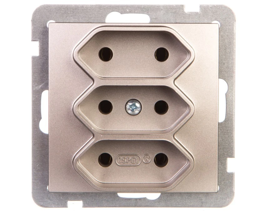 15. AS Gniazdo potrójne b/u 2,5A EURO satyna light GP-3G/m/45 42.39