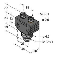 ... , wtyk M12x1 - 2x złącze M8x1, wtyk M12, 4-pin ...