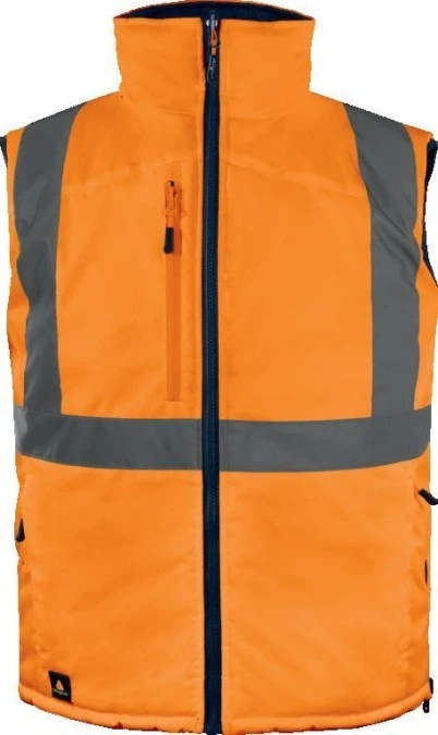 Kamizelka ocieplana, ostrzegawcza, dwustronna z poliestru Oxford, Pomarańczowy fluo-granatowy, rozmiar: S, FIDJ3HVORPT