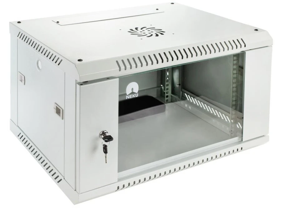 Szafa wisząca RACK 19 6U 350mm drzwi szklane szara NEKU TS BOX