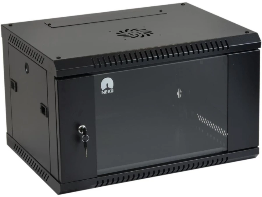 14. Szafa wisząca RACK 19 6U 350mm drzwi szklane czarna NEKU TS BOX 266.11