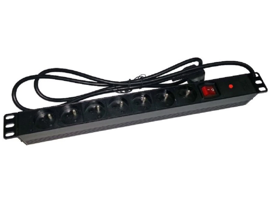 11. Listwa zasilająca rack 19 cali PDU gniazdo 7 x CEE 7/5 wtyk CEE 7/7 z wyłącznikiem i zabezpieczeniem 93.91