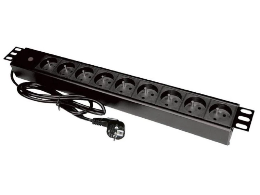 Listwa zasilająca rack 19 cali PDU gniazdo 9 x CEE 7/3 schuko wtyk CEE 7/7 z wyłącznikiem