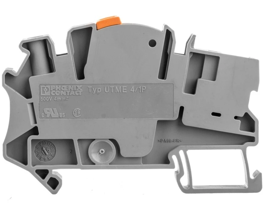 6. Złączka szynowa rozłączalna do przekładników pomiarowych 2-przewodowa 4mm2 śrubowa/wtykowa szara UTME 4/1P 3057416 /50szt./ 969.86