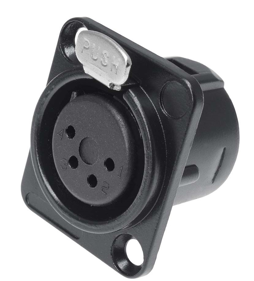Złącze XLR 4 -pinowe Montaż na panelu XLR Żeński Czarny