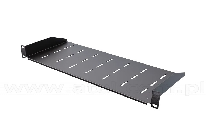 Półka do szafy rack 19", z otworami, 200mm, 1U, czarna