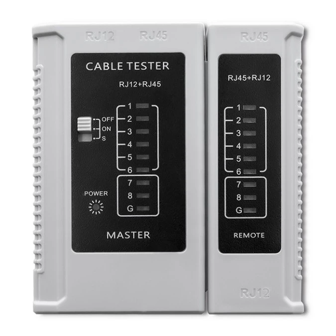 Tester kabli sieciowych LAN RJ45 + RJ12 / RJ11 z diodami LED REBEL