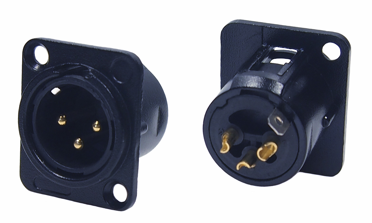Złącza XLR 3 -pinowe Montaż na panelu Męski Czarny