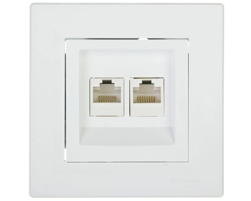 8. Gniazdo komputerowe Asfora podwójne 2xRJ45 kat.5e białe z ramką EPH4400121 80.54