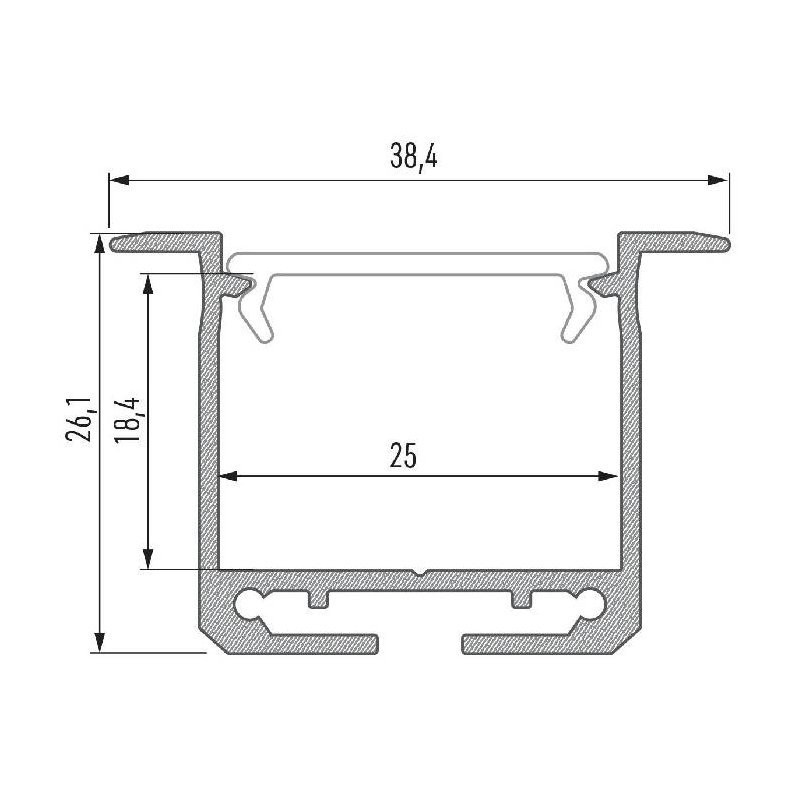 Profil LED Typ Gaudi anod. 2m 2,02m Wpuszczany do płyt GK gips karton