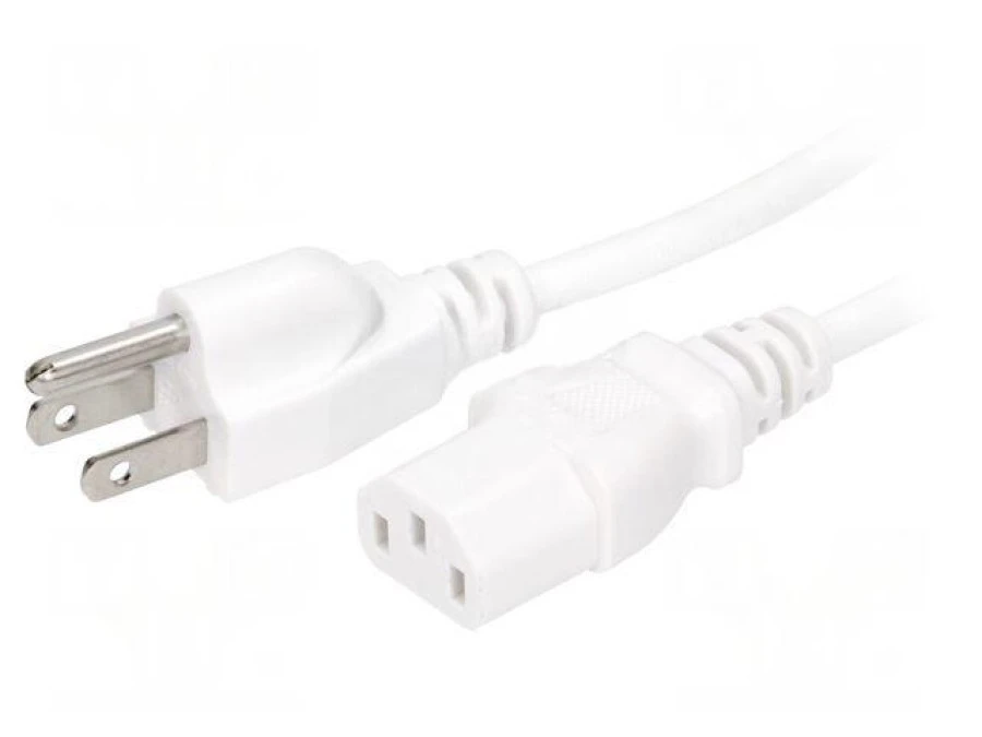 12. Kabel: 3x18AWG, IEC C13 żeński,NEMA 5-15 (B) wtyk, 5m LT-202+501 SVT 18/3 105C WHT 5M 52.37