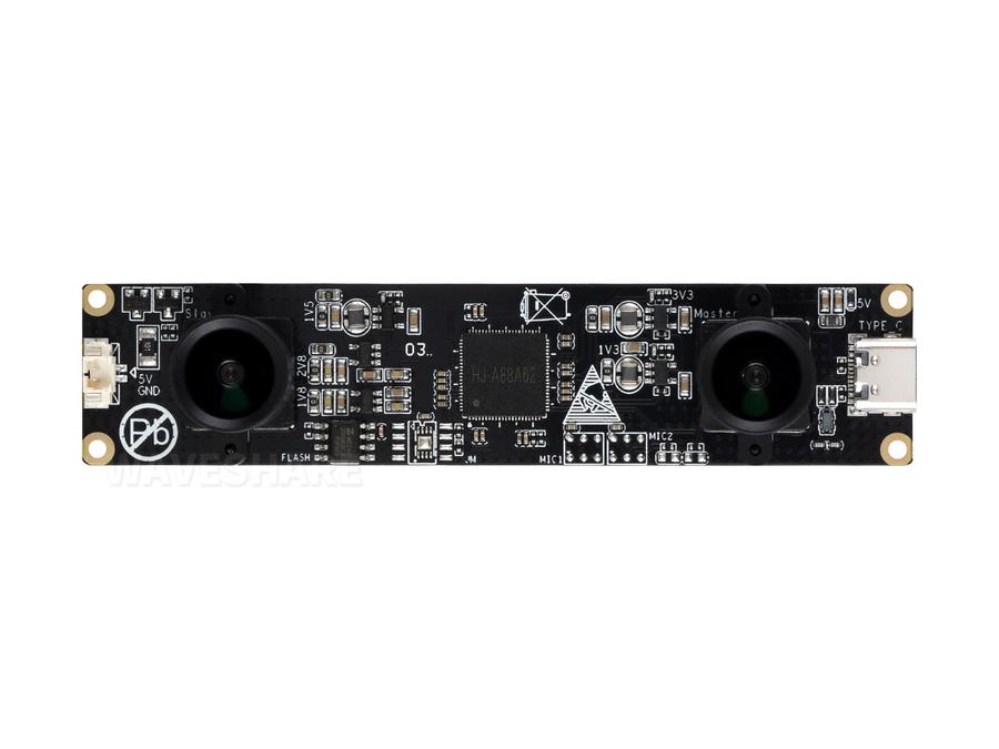 1. Waveshare OS02G10 2MP Stereo USB Camera Module, OS02G10 Sensor Chip, USB2.0 Port, Synchronized Same-frame Output, 62mm Baseline, 210.75