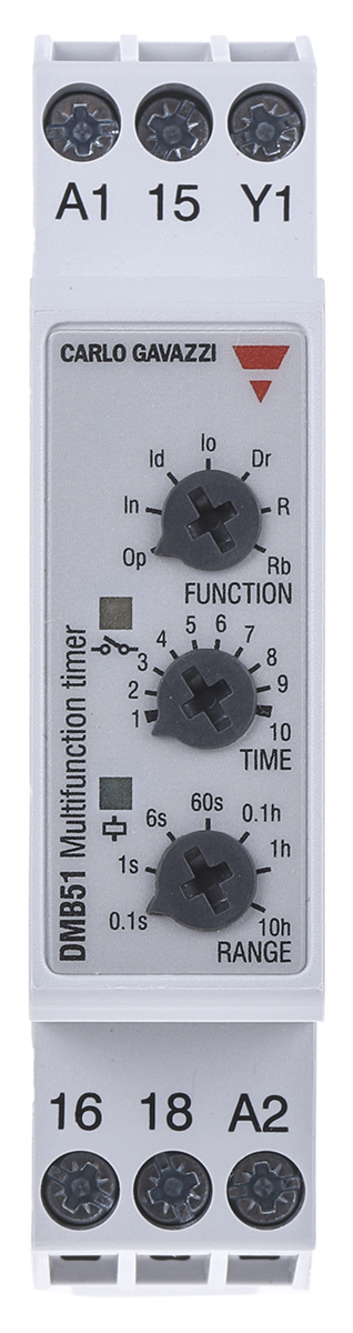 15. Timer Relay Szyna DIN 24 → 240 V ac, 24V dc SPDT 2-stykowy Carlo Gavazzi SPDT 0.1 s → 100h Wielofunkcyjne 323.69