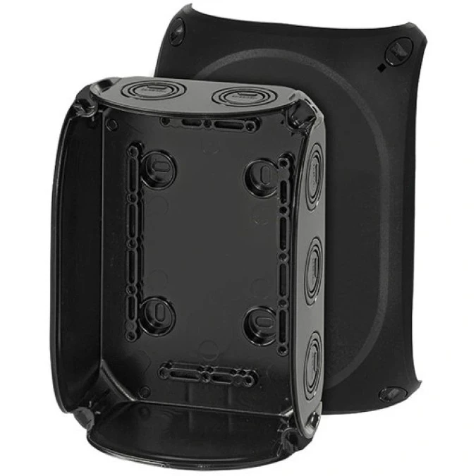 15. Puszka instalacyjna KF 1000 B natynkowa bez zacisków z linką łączącą pokrywę z podstawą 180x130x77mm hermetyczna IP66 czarna HEN 208.58