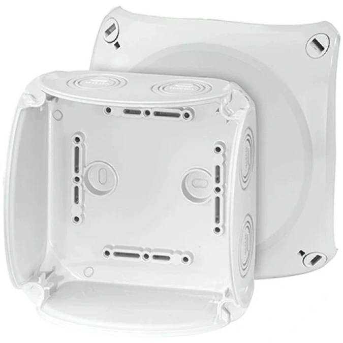 1. Puszka instalacyjna KF 0600 G natynkowa bez zacisków z linką łączącą pokrywę z podstawą 130x130x77mm hermetyczna IP66 szara HENS 160.44