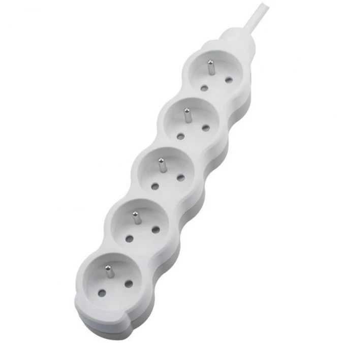 6. Przedłużacz elektryczny Listwa zasilająca na 5 gniazd [2P+Z] z wyłącznikiem biało-szara 1,5m BEMKO 24.16