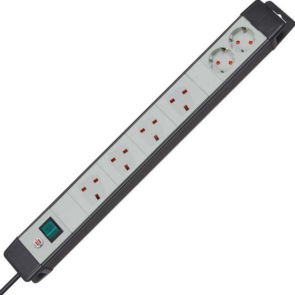 Przedłużacz 3m 6 gniazda Przedłużacz typ BS, Schuko Typ G, brytyjskie BS1363 13A