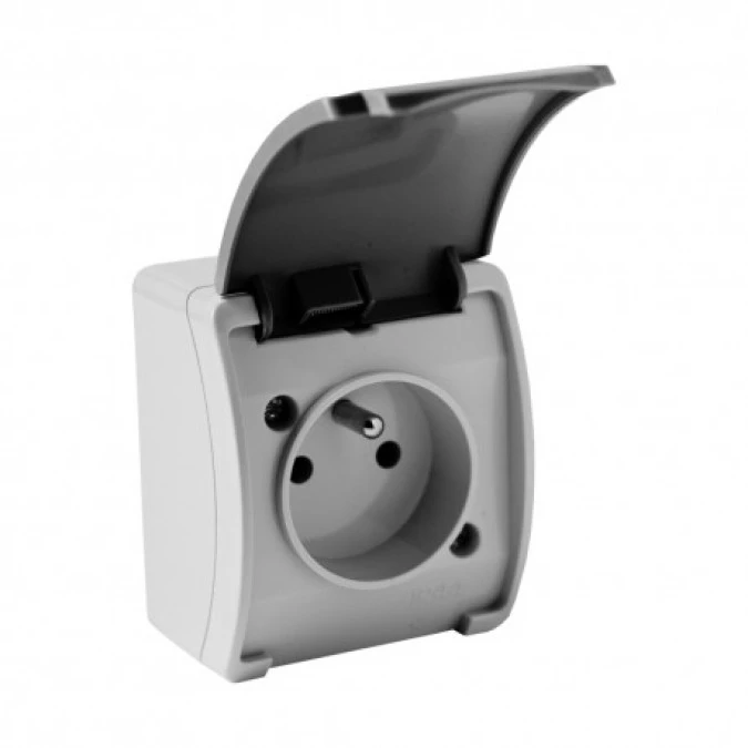 Gniazdo pojedyncze z uziemieniem natynkowe IP44 popiel/grafit 161-08 DV 8202