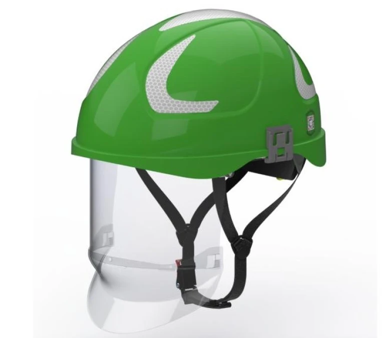 Hubix zielony hełm elektroizolacyjny z osłoną twarzy (ruchomą) W1 klasy 1 Box‑test, do 20 kV AC / 1,5 kV DC SECRA H058S