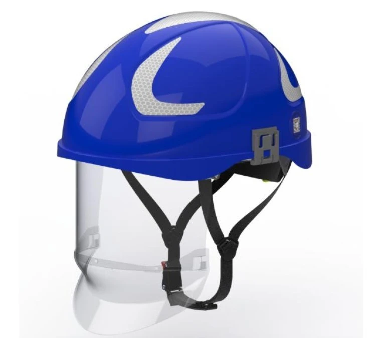 Hubix niebieski hełm elektroizolacyjny z osłoną twarzy (ruchomą) W1 klasy 1 Box‑test, do 20 kV AC / 1,5 kV DC SECRA H058S